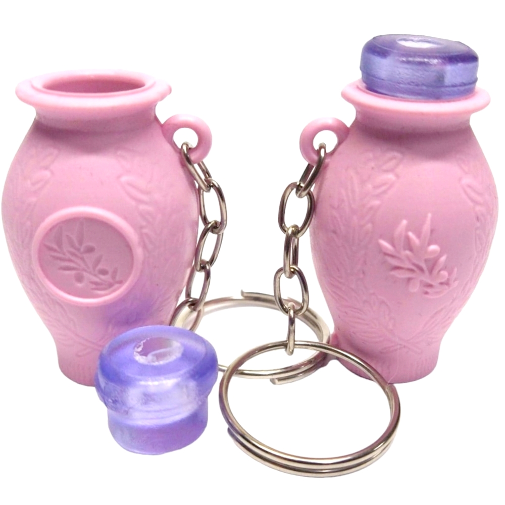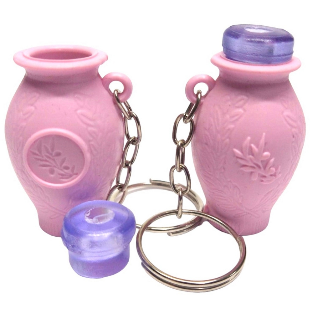 50 Chaveiros Botija Pink Para Azeite Chaveiro montado com corrente e argola. Acompanha tampa. Botija em Plástico PP Pink Tampa em Plástico PVC Transparente Corrente e argola em aço niquelado Medida aproximada da botija com a tampa largura 2,6cm x Altura 5,5cm Capacidade interna 3ml (utilize uma seringa para medir a quantidade de óleo adequada ao encher a botija)R$49,90 -