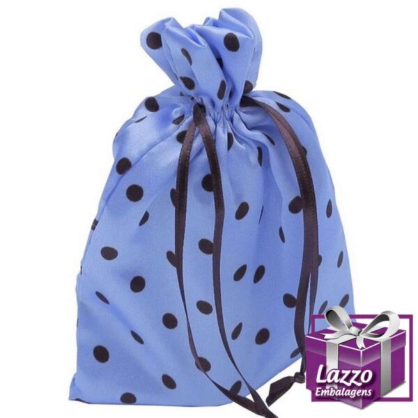 Pct 10 Sacos de Cetim Azul Poa Marrom 08X10cm