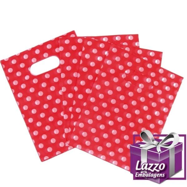 100 Sacolinha Plastica 13x18cm Poá Vermelha